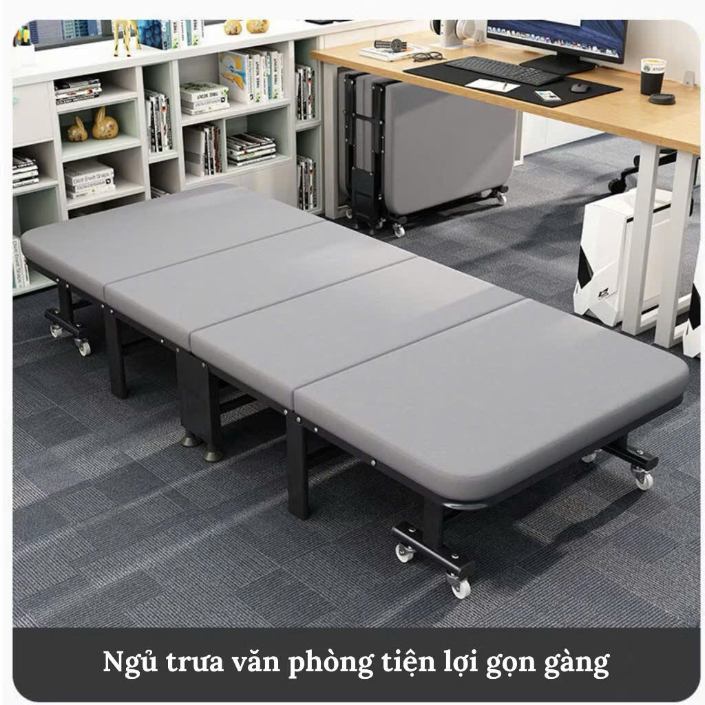 Giường văn phòng gấp gọn đa năng có bánh xe di chuyển, giường xếp gấp gọn thông minh đệm nằm êm ái