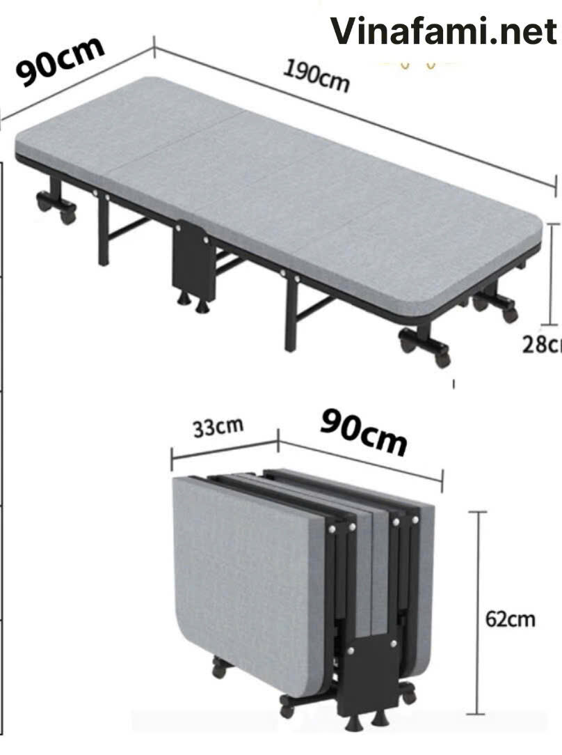 – Riêng giường gấp xanh có bánh xe di chuyển dễ dàng