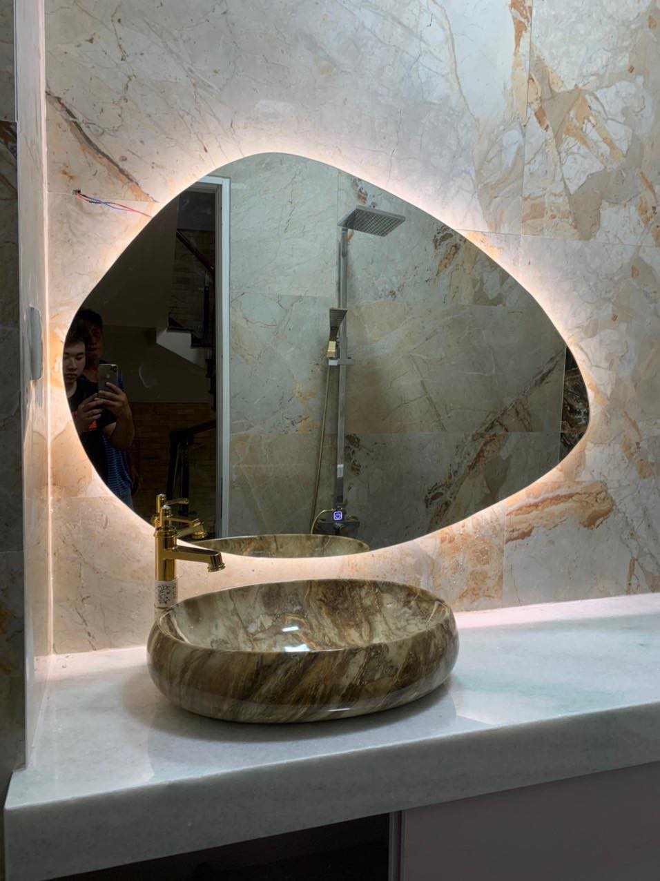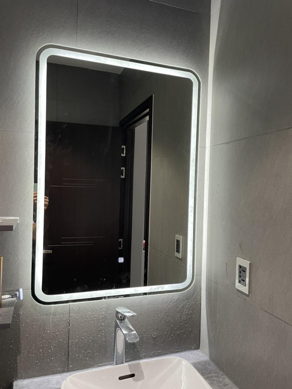 – Gương đơn giản, hiện đại, ánh sáng ấm áp sang trọng phù hợp với không gian nhà tắm, vệ sinh.
