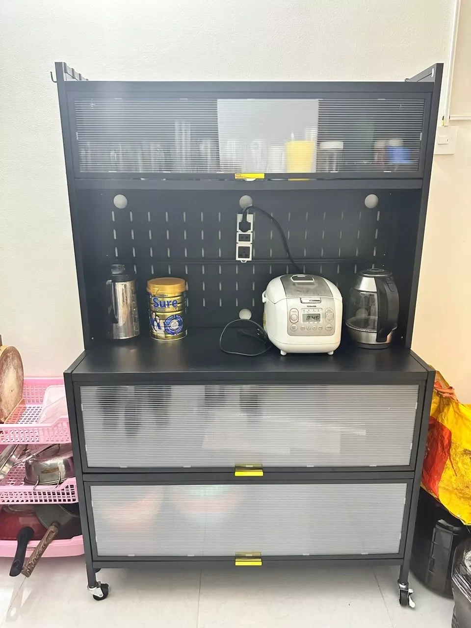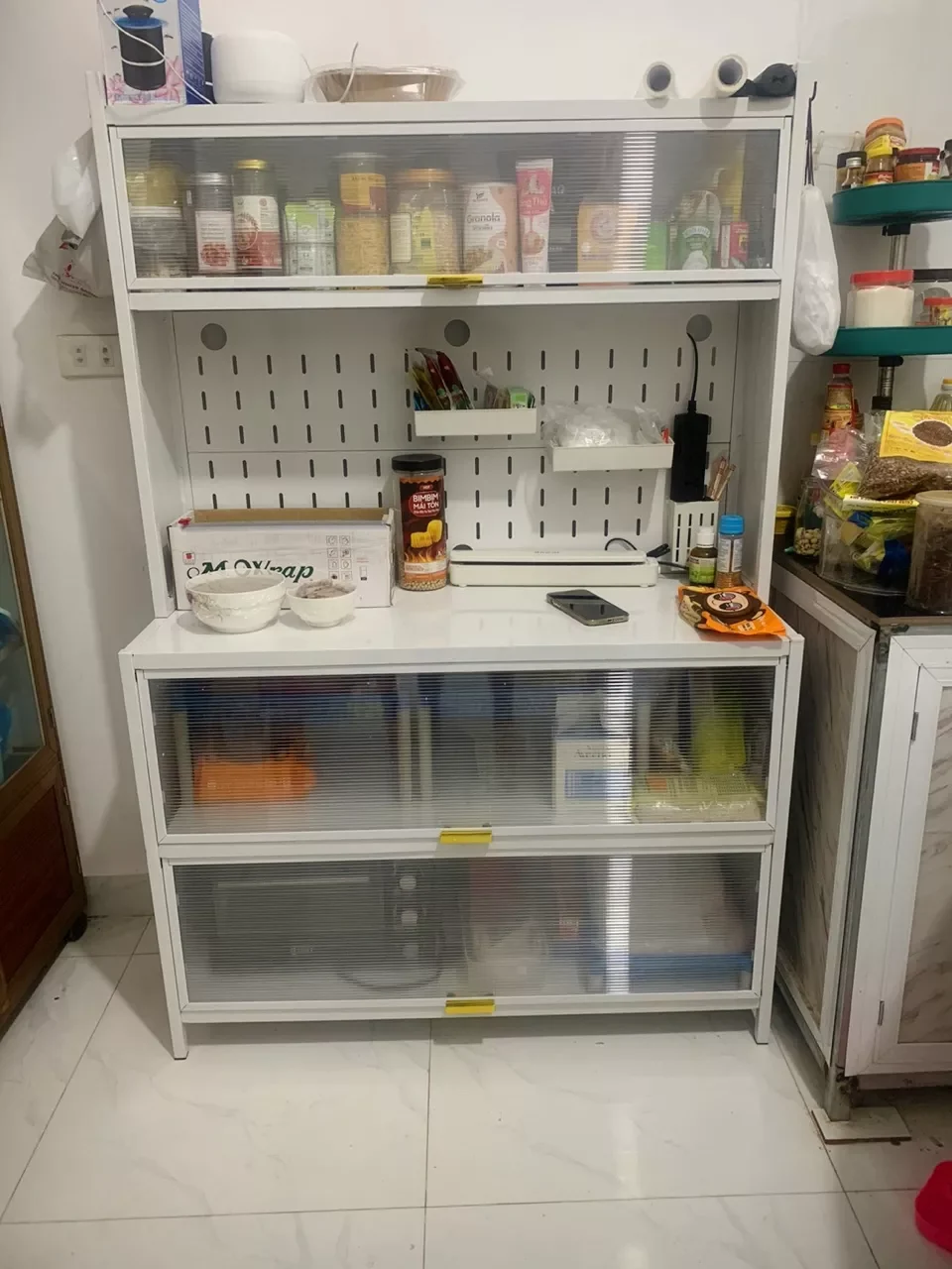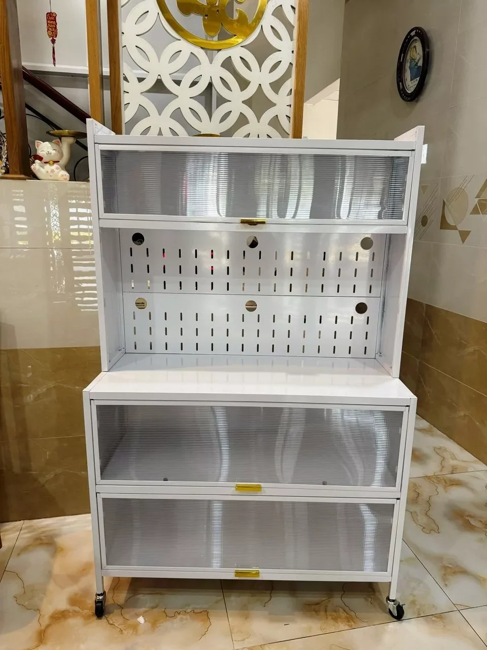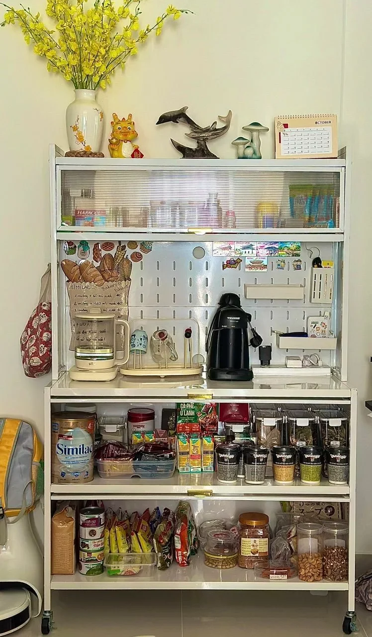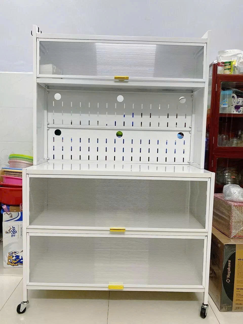 -Tiện lợi khi di chuyển: Tủ có bánh xe giúp bạn dễ dàng di chuyển tủ đến bất kỳ vị trí nào trong bếp. Ví dụ, bạn có thể di chuyển tủ đến gần bếp để lấy thức ăn và dụng cụ nấu nướng, hoặc di chuyển tủ đến gần bàn ăn để lấy bát đĩa và đồ dùng.