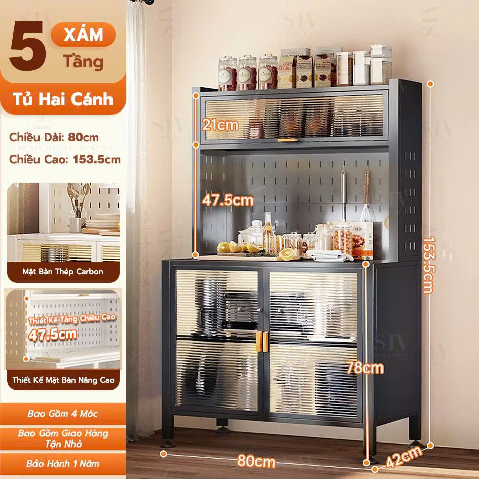 - KỆ 5 TẦNG: 2 CÁNH TỦ KT: 80 X 42 X 154 CM GIÁ 1.900K
