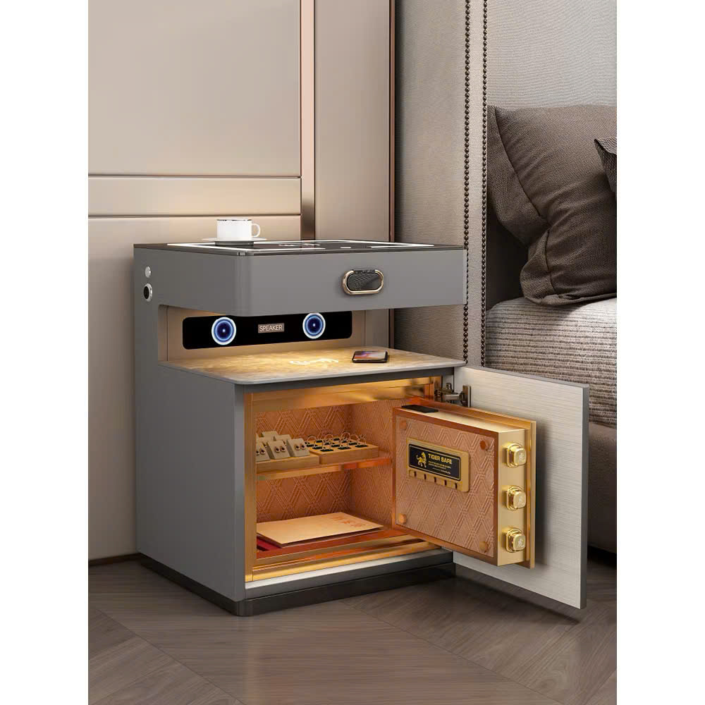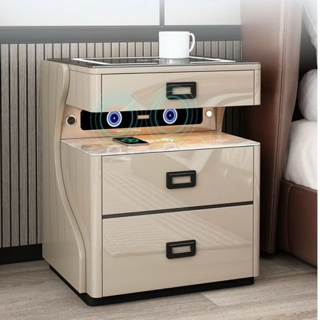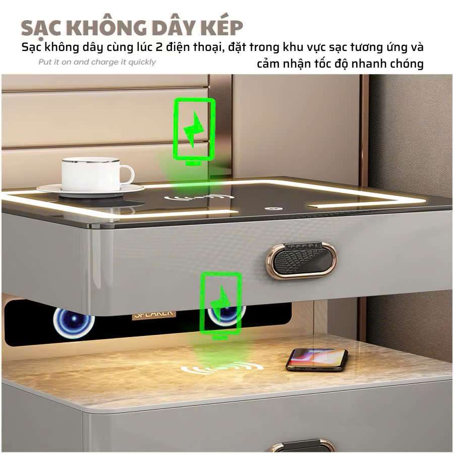 Tủ đầu giường thông minh kèm két mini khóa vân tay ẩn công nghệ 4.0 sạc kép không dây, loa bluetooth,cổng sạc USB