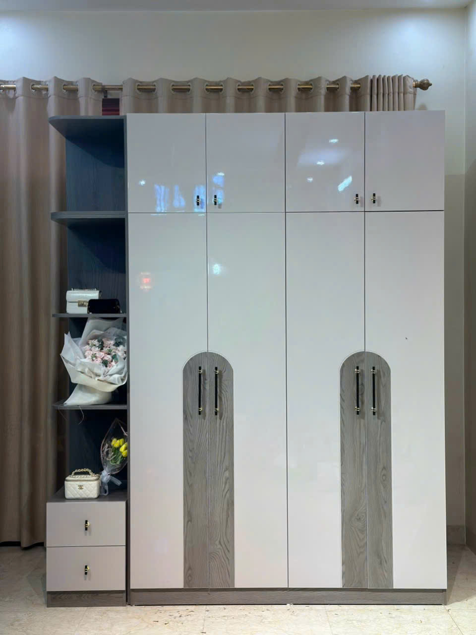 Tủ quần áo gỗ công nghiệp hiện đại với thiết kế sang trọng và tiện nghi, giúp tối đa hóa không gian lưu trữ quần áo và vật dụng. Chất liệu gỗ công nghiệp bền đẹp theo thời gian. Rất phù hợp với nội thất phòng ngủ chung cư, nhà phố.